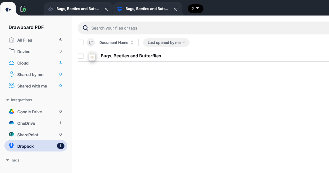 After you’ve added your desired files, you can start working on them. Use the “All” or “Dropbox” tabs on your dashboard to filter by Dropbox-connected files, then click or tap the file(s) you want to open.