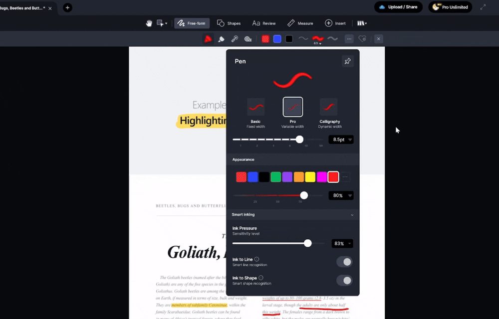The refreshed toolbar icons and expanded keyboard shortcut support make common actions faster to reach and easier to remember. Tools now have dedicated shortcuts: P for Pen, V for Selection, and so on across the toolbar. This provides keyboard-first users a more direct path into the full annotation workflow.
