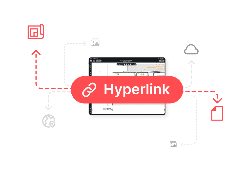 Tap hyperlinks between related sheets, details, and supporting documents to move quickly through large or complex drawing sets.