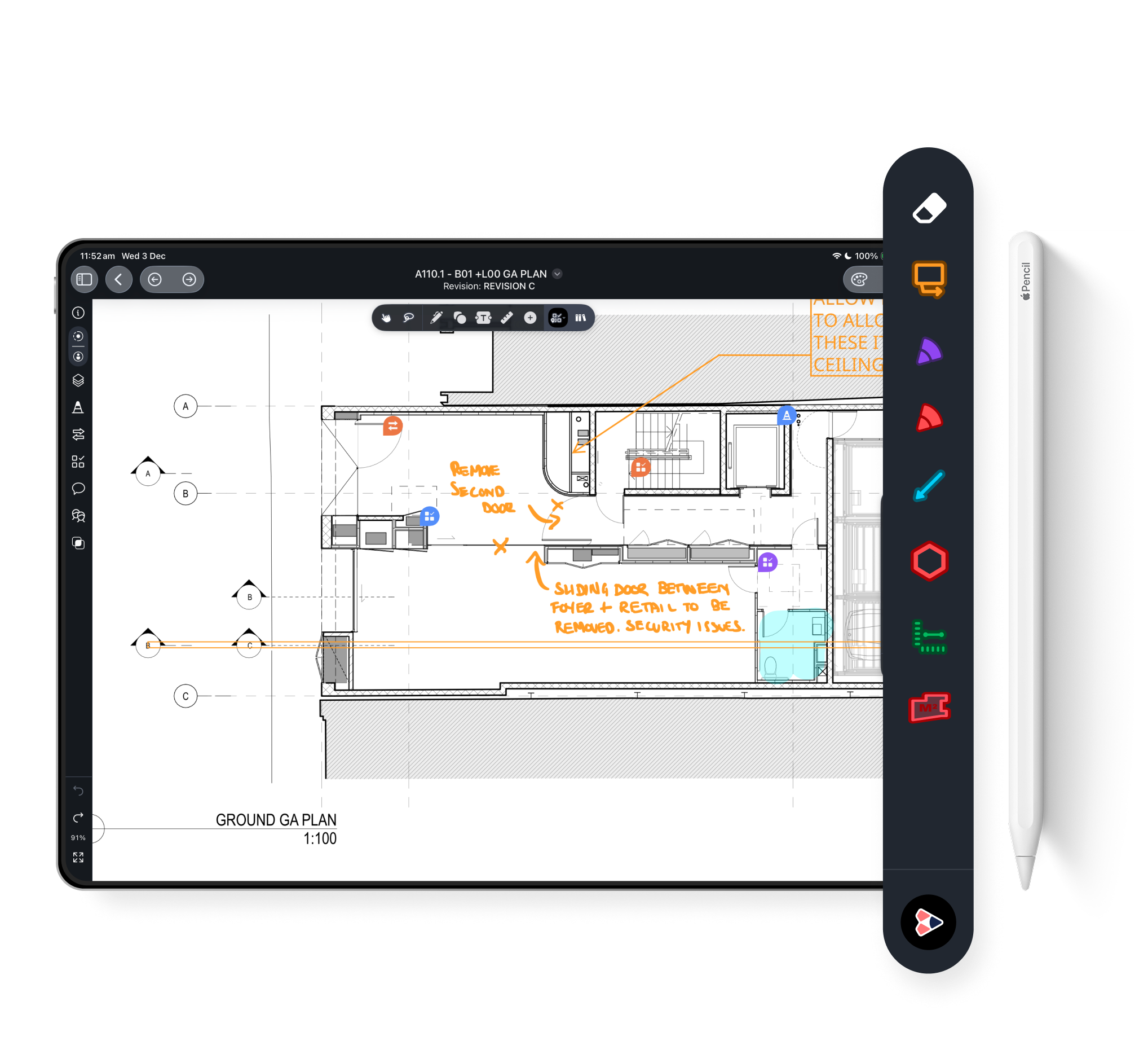 Yes, Drawboard Projects fully supports the Apple Pencil on iPad, allowing you to sketch, redline, and call out issues on drawings with pressure-sensitive ink and pen-on-paper accuracy.